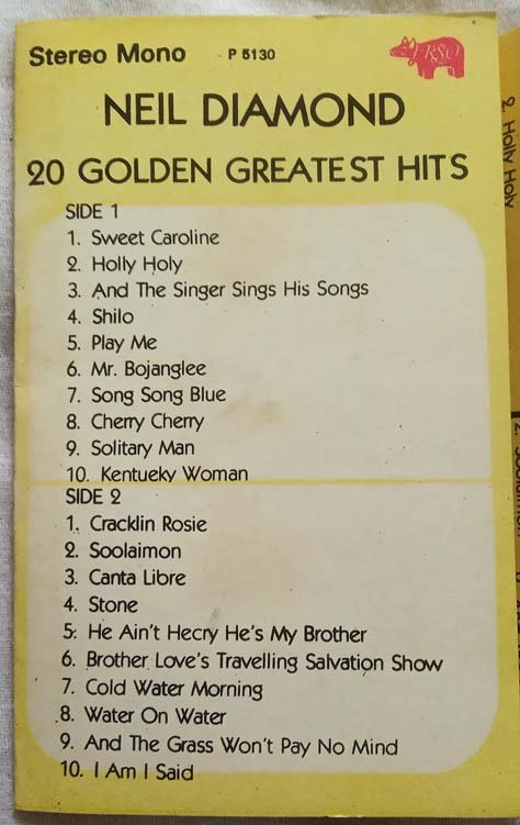 Neil Diamond 20 Golden Greatest Hits Audio Cassette