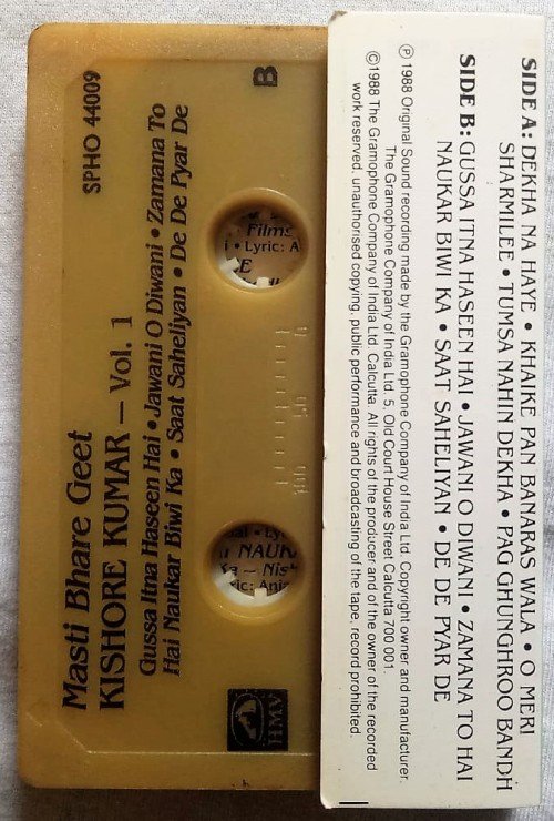Masti Bhare Geet Kishore Kumar Vol.1 Hindi Audio Cassette