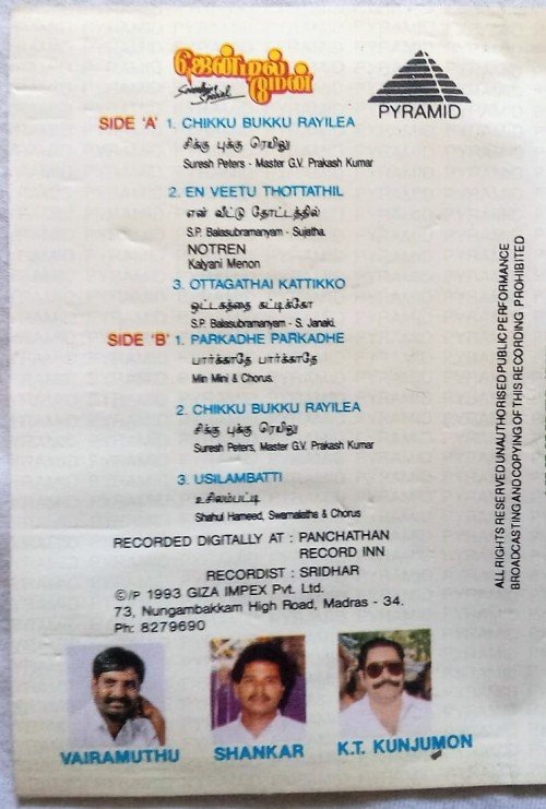 Gentleman Tamil Audio Cassettes By A.R. Rahman