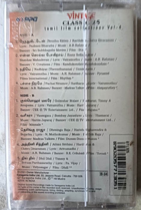 Vintage Classic 25 Vol 1 to 4 Tamil Audio Cassette (Sealed)