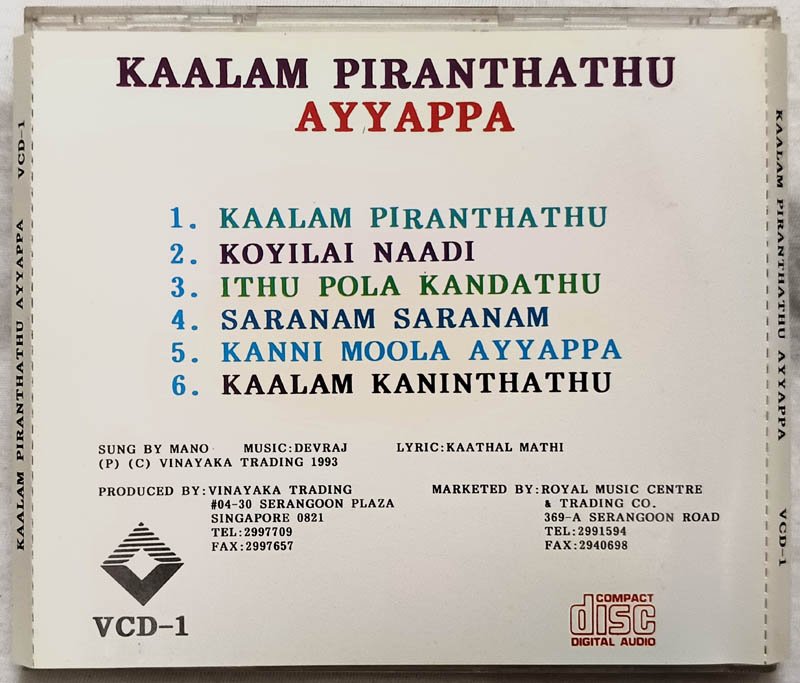 Kaalam Piranthathu Ayyappa Tamil Devotional Audio cd By Mano