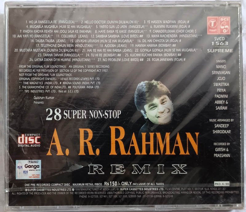 28 super Non Stop A R Rahman Remix Audio cd (Sealed)