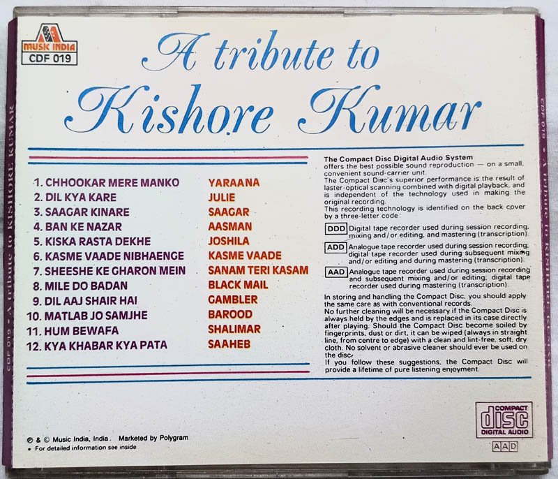 A Tribute to Kishore Kumar Audio cd