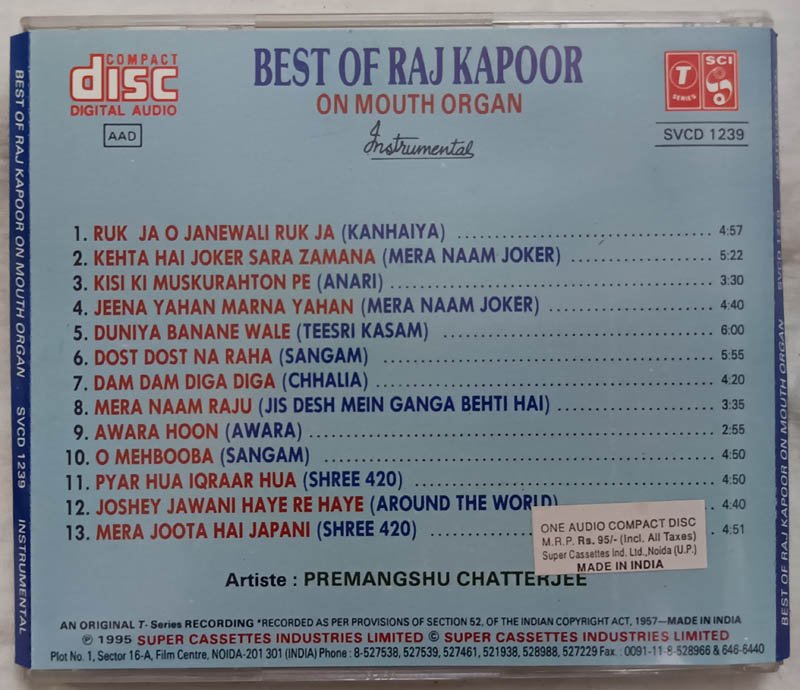 Best of Raj Kapoor on Mouth Organ Instrumental Hindi Audio Cd