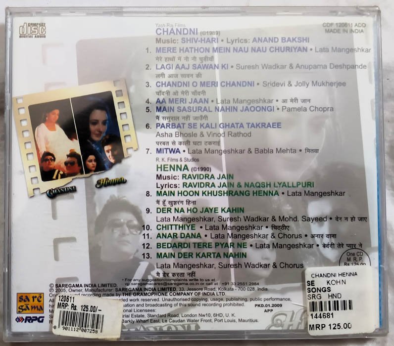 Chandni – Henna Hindi Audio Cd (Sealed)