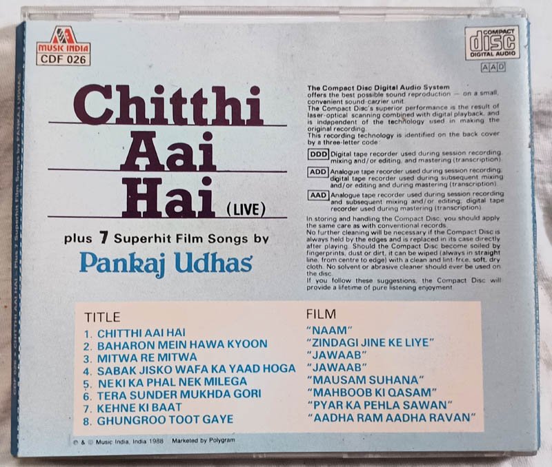 Chitthi Aai Hai live Pankag Udhas Audio cd