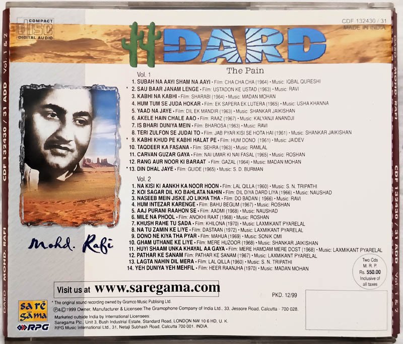Dard the pain Mohd Rafi Hindi Audio cd