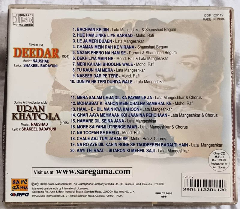 Deedar – Uran Khatola Hindi Audio cd By Naushad