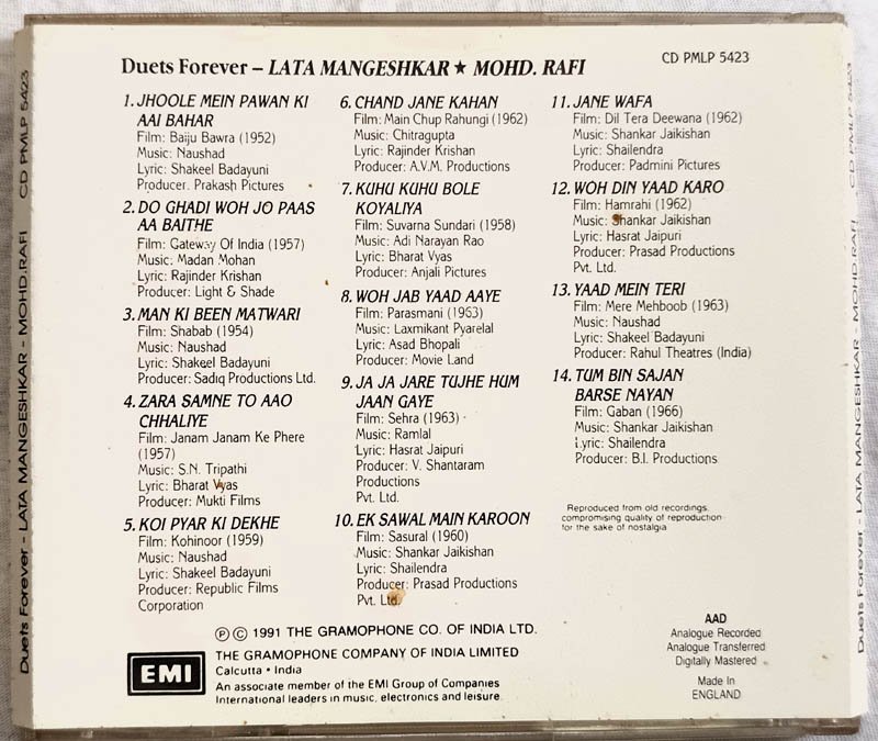 Duets Forever Lata Mangeshkar Mohd Rafi Hindi Audio cd