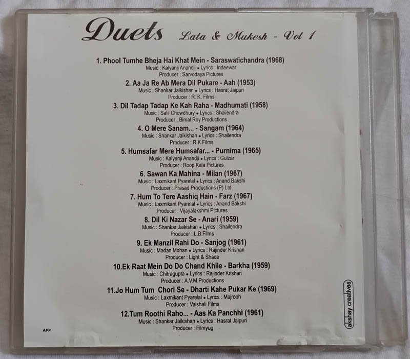 Duets Lata & Mukesh Vol 1 Hindi Audio Cd