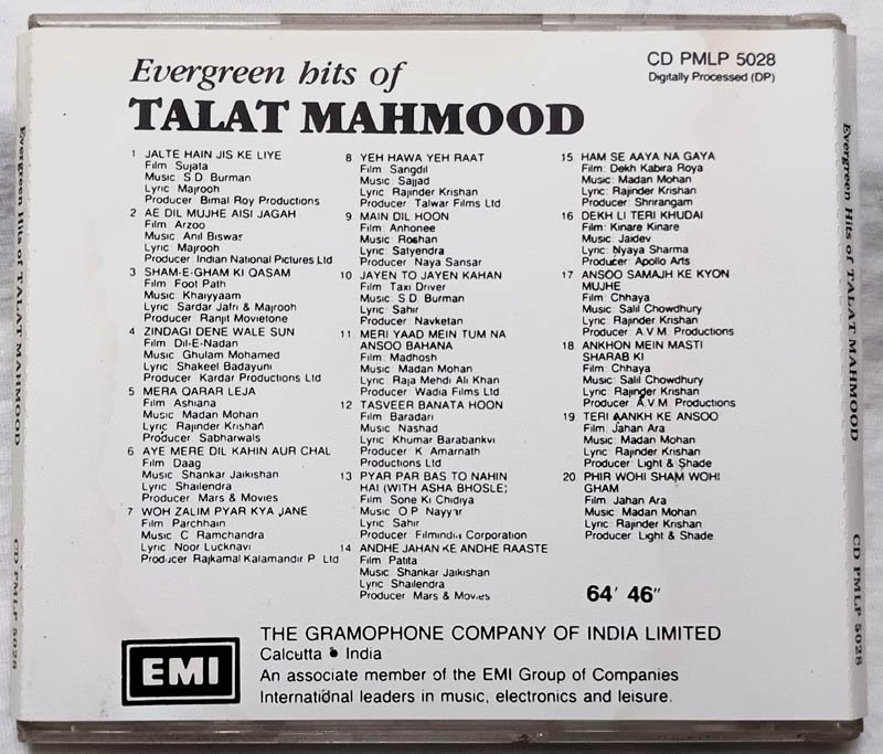 Evergreen Hits of Talat Mahmood Hindi Audio Cd