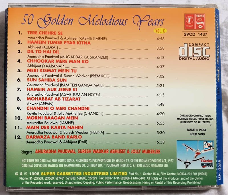 Golden Melodies 50 Years Vol.5 Hindi Audio Cd