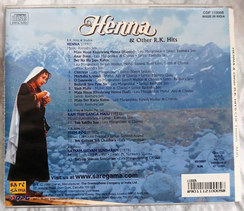 Henna – R.K. Hits Hindi Audio Cd By Ravindra Jain
