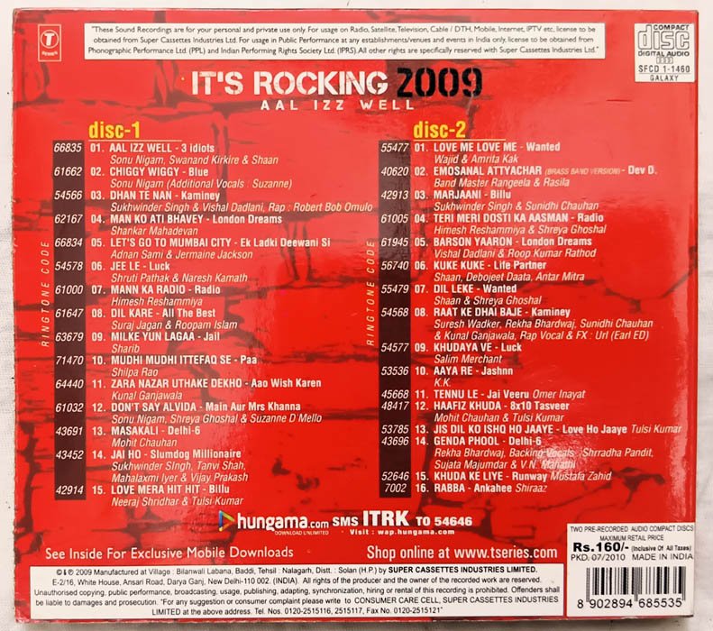 Its Rocking 2009 Aal Izz Well Hindi Audio cd