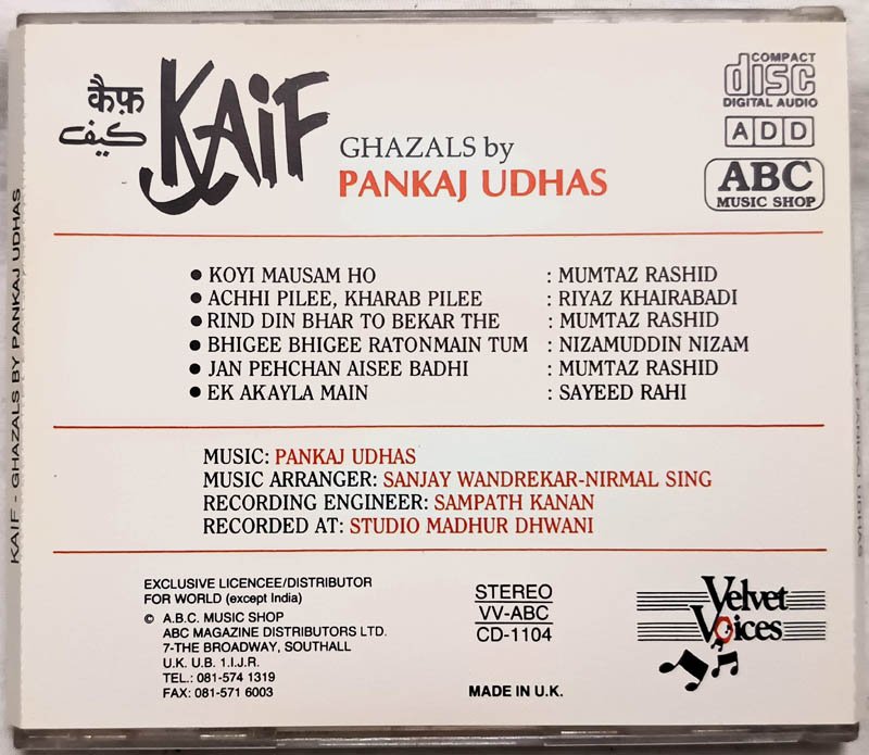 Kaif Ghazal Pankaj Udhas Audio CD