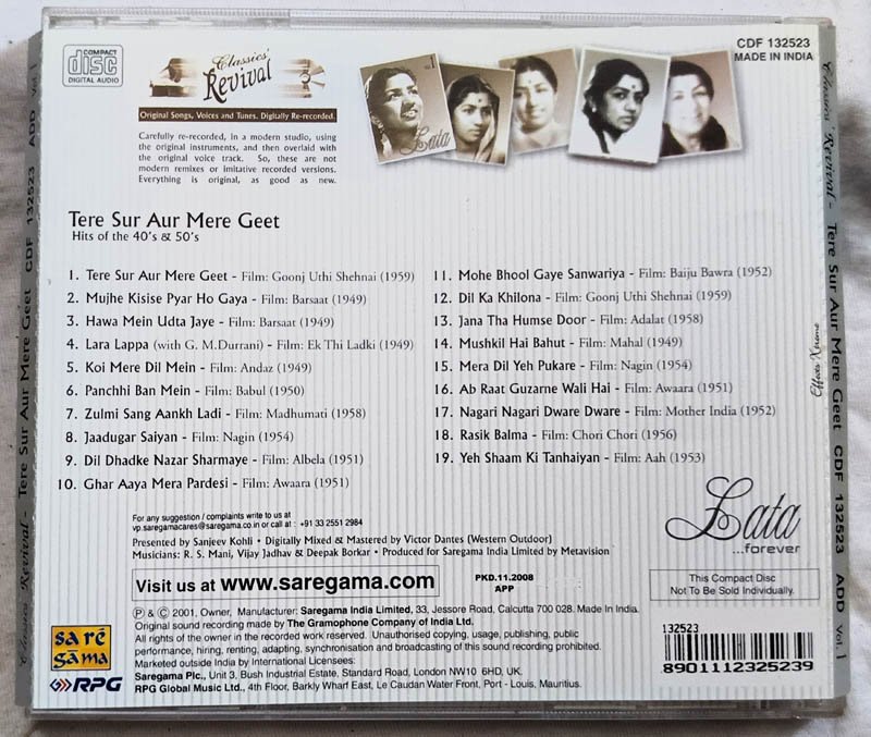 Lata Forever Tere Sur Aur Mere Geet Vol 1 Hindi Audio cd