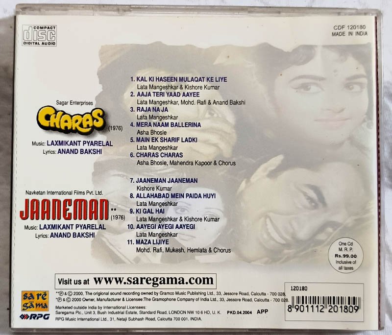 Charas – Jaaneman Hindi Audio cd By Laxmikant Pyarelal