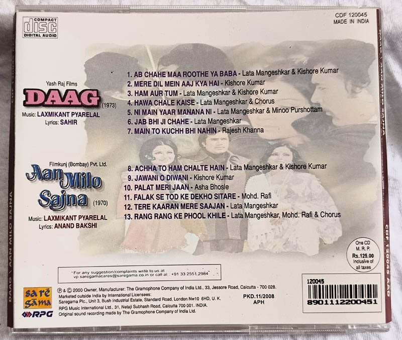Daag – Aan Milo Sajna Hindi Audio Cd Laxmikant Pyarelal