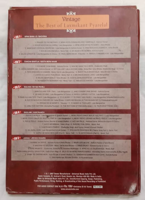 Vintage The Best of Laxmikant Pyarelal Hindi Audio cd