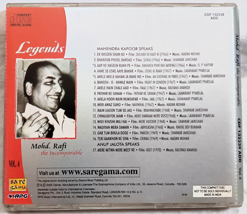 Legends Mohd.Rafi Thee Incomparable Vol.4 Hindi Audio Cd