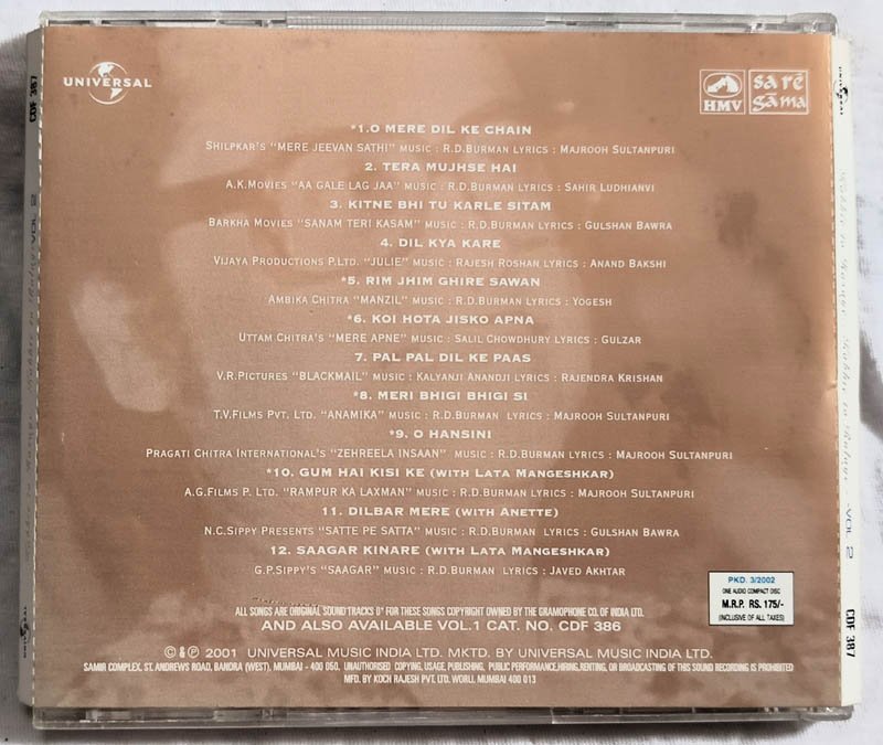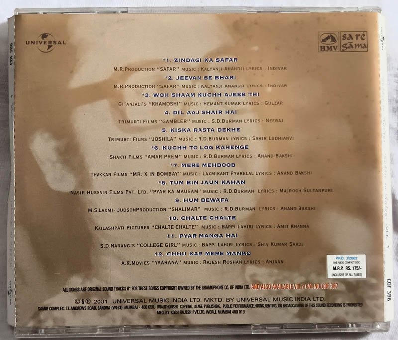 Two Great Labels One Great Album A Life Time Collection Kishore Kumar Vol 1 & 2 Hindi Audio Cd