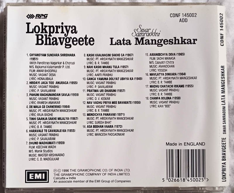 Lokpriya Bhavgeete Swar Samraddni Lata Mangeshkar Audio cd