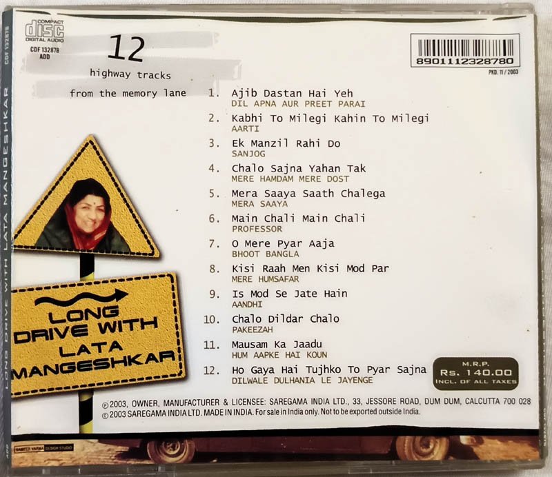 Long Drive with Lata Mangeshkar Hindi Audio Cd
