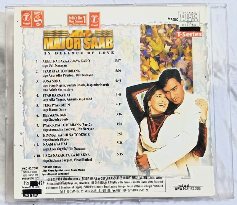Major Saab Hindi Audio CD