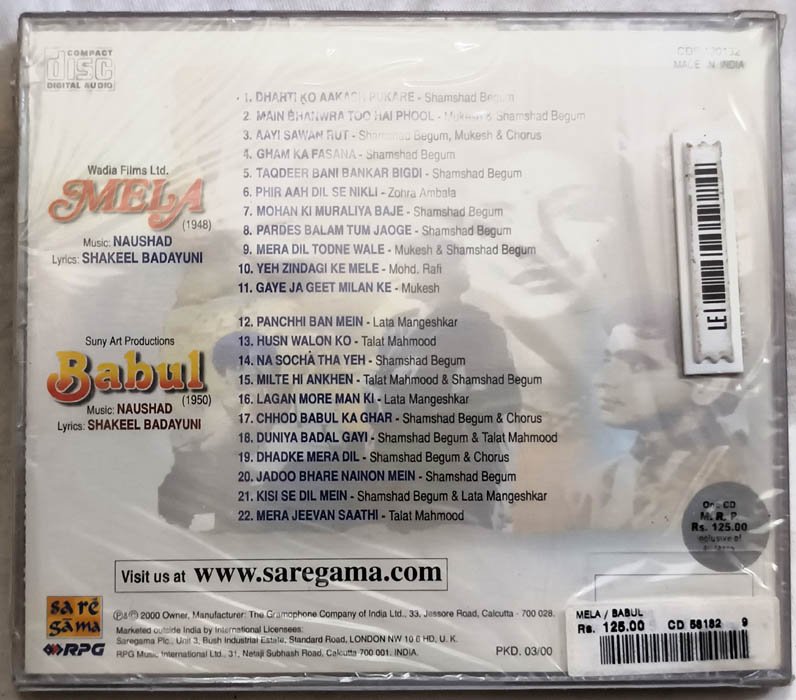 Mela – Babul Hindi Audio cd By Naushad