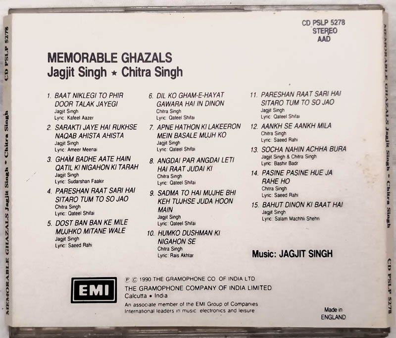 Memorable Ghazals Jagjit Singh Chitra Singh audio cd