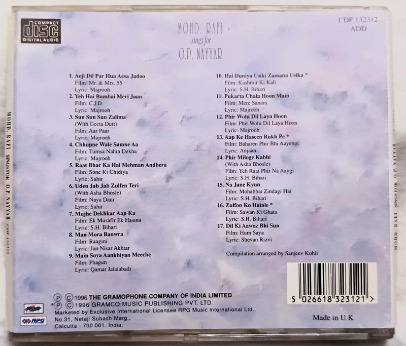 Mohd Rafi Sing for O P Nayyar Hindi Audio cd