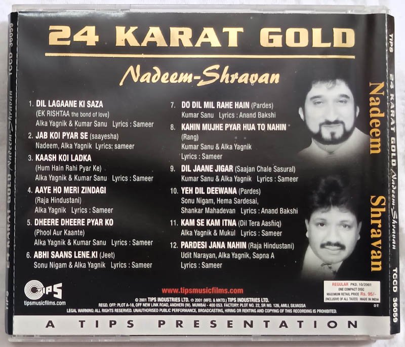 24 Karat Gold Nadeem-Shravan 12 Tracks Hindi Audio Cd