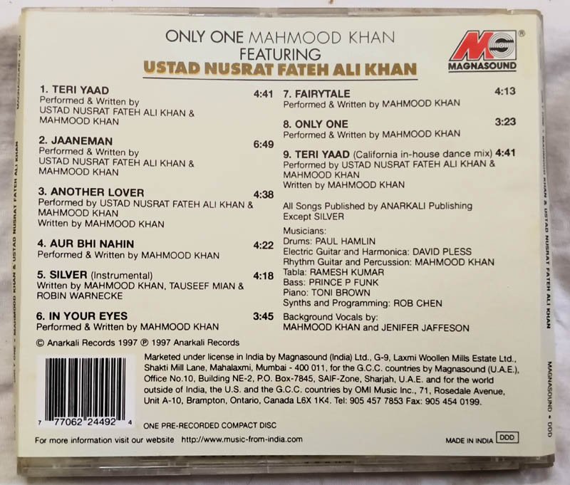 Only one Mahmood Khan Featuring Ustad Nusrat Fateh Ali Khan Hindi Audio cd