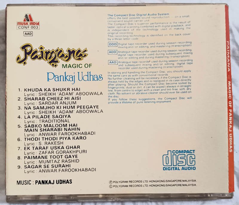 Paimane Magic of Pankaj Udhas Hindi Audio cd
