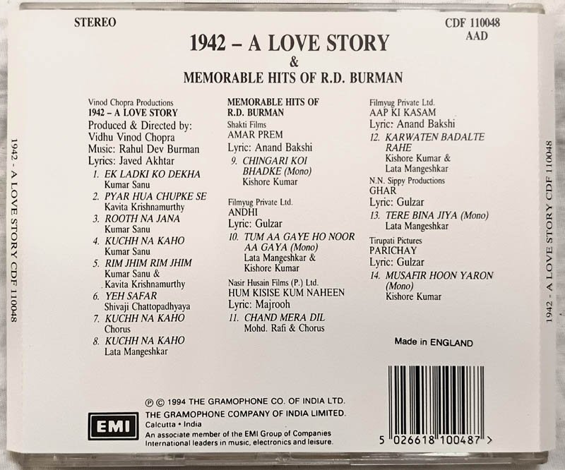1942 A Love Story Hindi Audio Cd