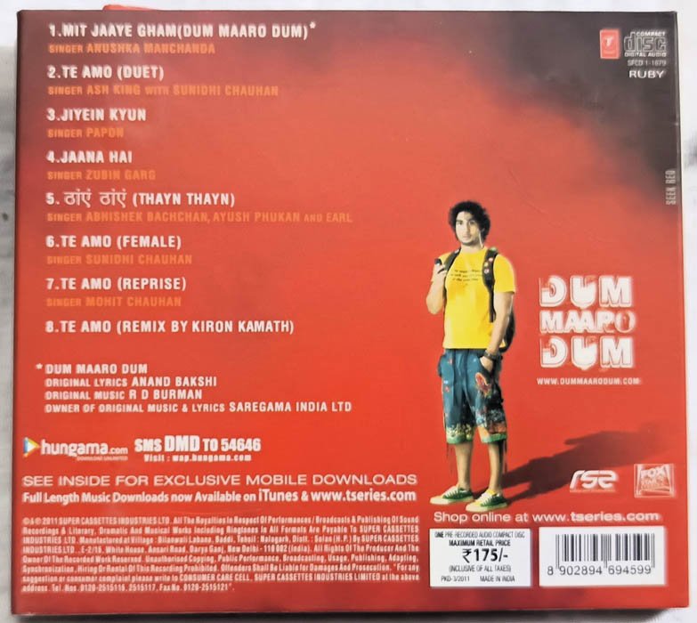 Dum Maro Dum Hindi Audio cd By R D Burman