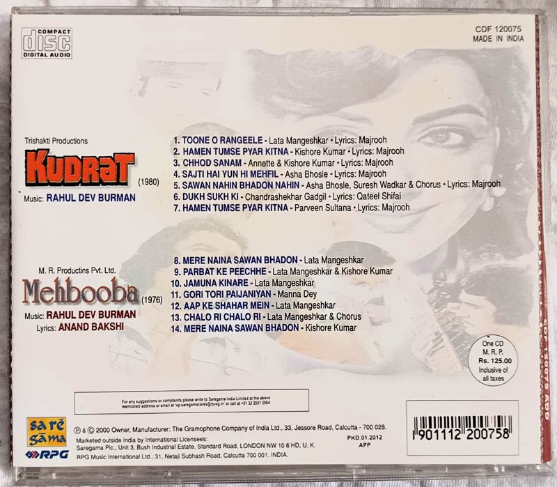 Kudrat – Mehbooba Hindi Audio cd By R D Burman