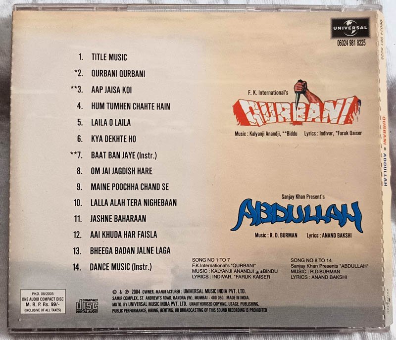 Qurbani – Abdullah Hindi Audio cd