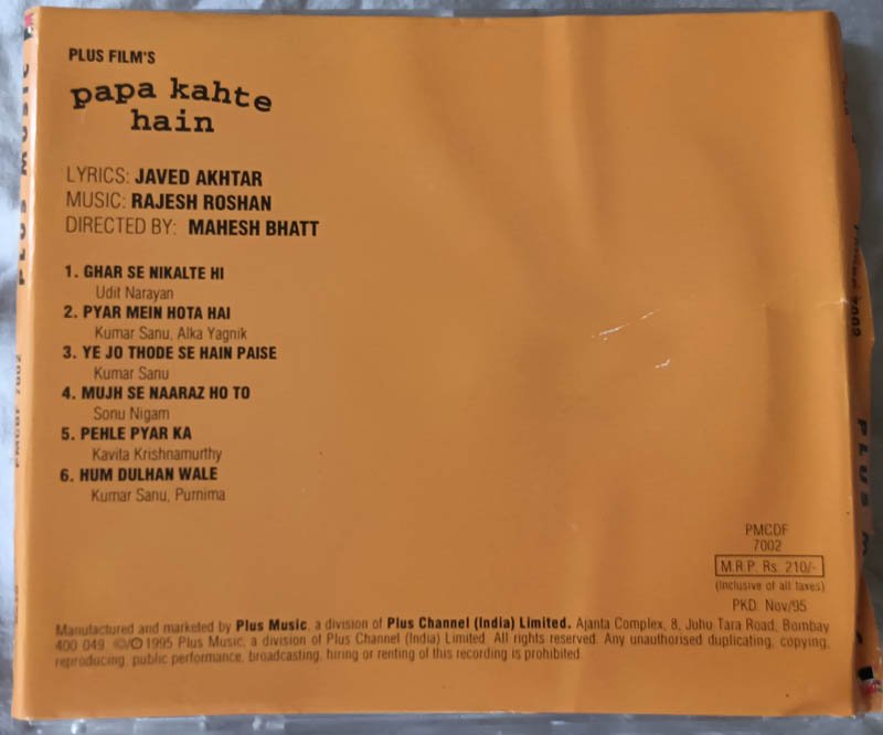 Papa Kehte Hai Hindi Audio CD By Rajesh Roshan