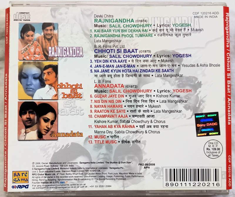 Rajnigandha – Chhoti Si Baat – Annadata Hindi Audio cd By Salil Chowdhury