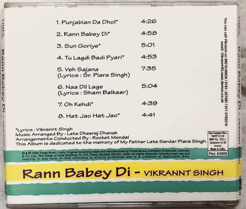 Rann Babey Di Vikrannt Singh Hindi Audio cd