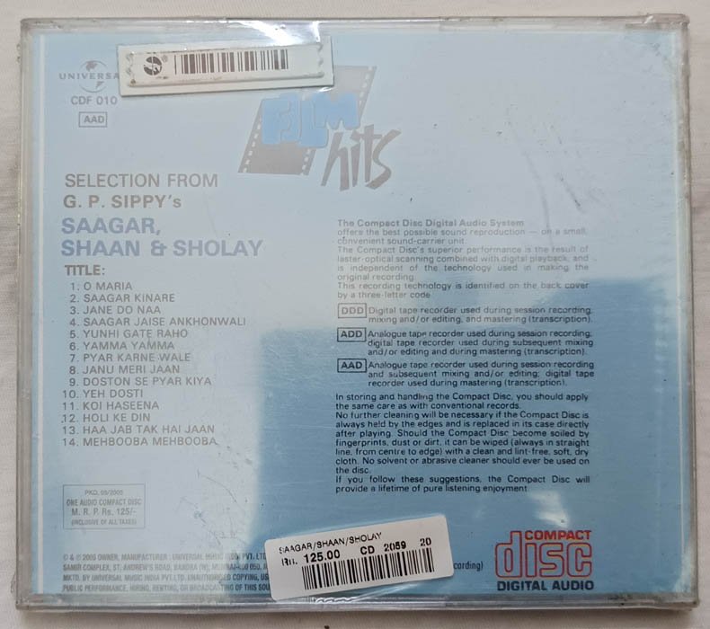 Saagar – Shaan & Sholay Hindi Audio CD (Sealed)