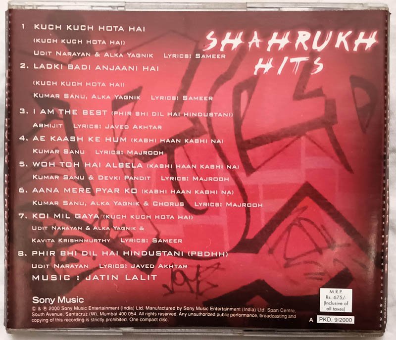 Shahrukh Hits Hindi Audio CD