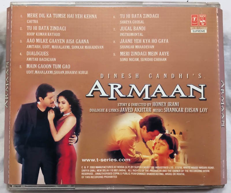 Armaan Hindi Audio Cd By Shankat-Ehsan-Loy