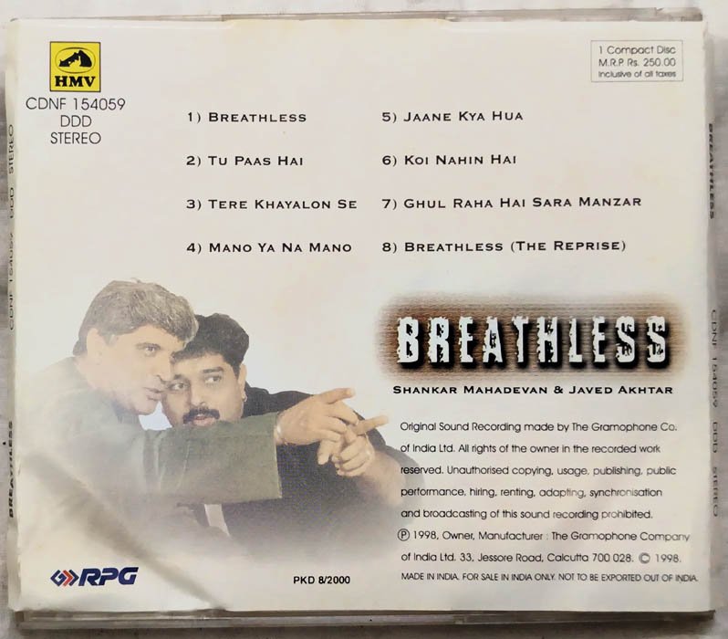 Shankar Mahadevan Breathless Javed Akhtar Hindi Audio Cd