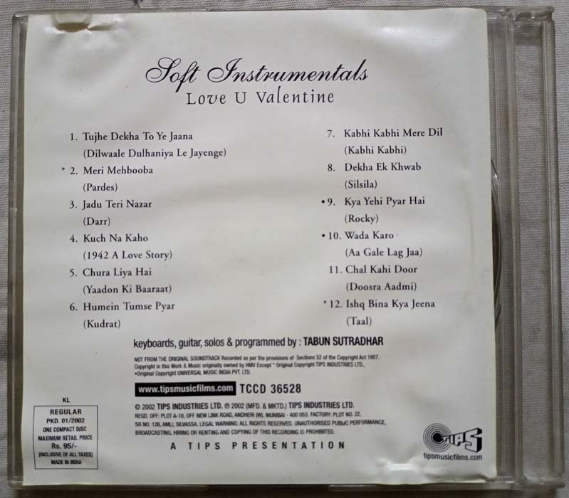 Soft Instrumentals Love u Valentine Hindi Instrumental Audio Cd