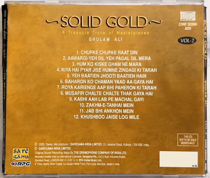 Solid Gold Ghulam Ali Vol 1 & 2 Hindi Audio cd