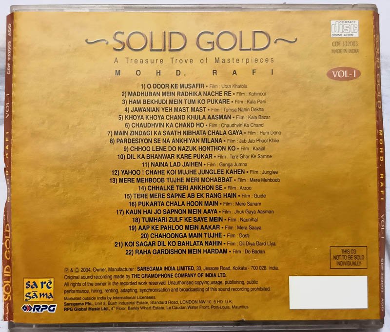 Solid Gold Mohd. Rafi Vol.1 Hindi Audio Cd