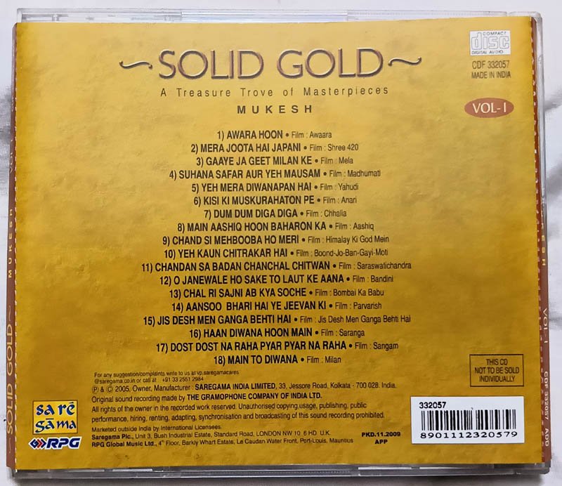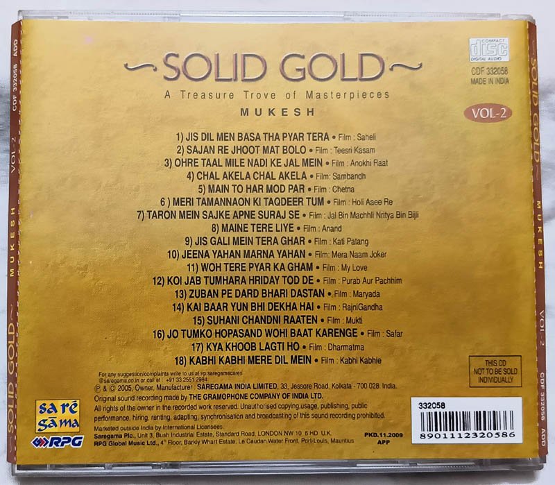 Solid Gold Mukesh Vol 1 & 2 Hindi Audio Cd