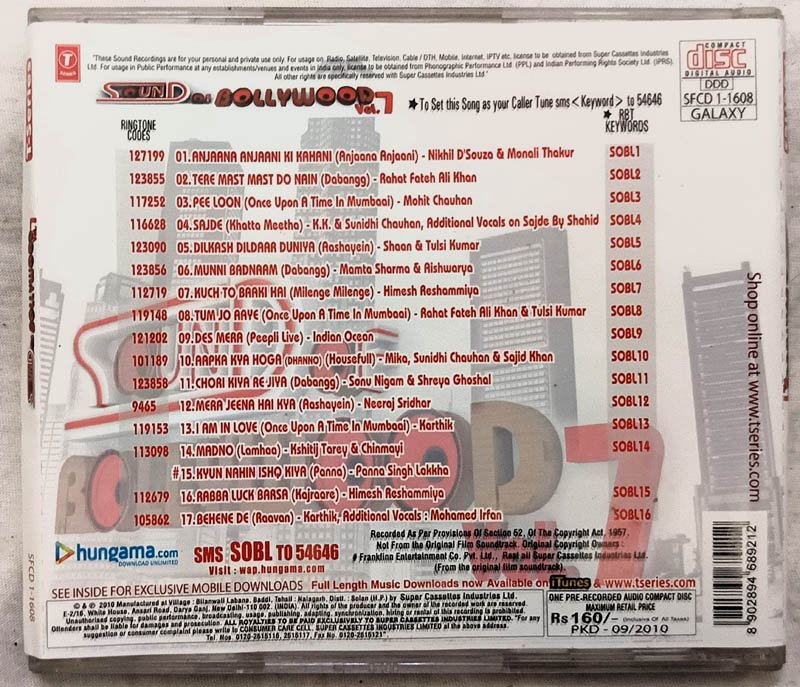 Sound of Bollywood Vol.7 Hindi Audio Cd